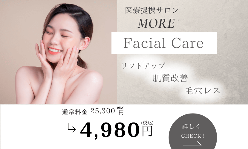 フェイシャルケア 毛穴ケアでうるおい溢れる水光肌に お肌の状態やお悩みに合わせて、丁寧にケアするフェイシャルメニュー。 くすみ・むくみ・ハリ不足など、年齢とともに変化するお肌を健やかに整えます。 施術後の透明感とすっきりしたフェイスラインをご実感ください。 特長 ダウンタイム無しで気軽に肌ケア 毛穴洗浄プラズマ・ハーブピーリング
